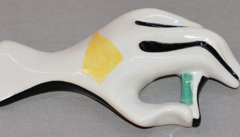 Antonia Campi, per la Società Ceramica Italiana di Laveno, Fermacarte mani, terraglia, h 2,5 x 15 x 8 cm, collezione privata
