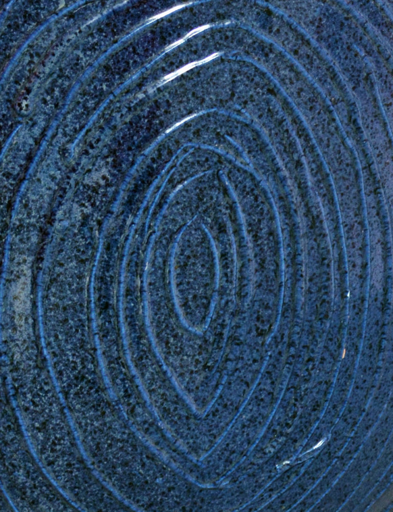 Il grande vaso dalle forme curvilinee e dalle anse laterali piatte e a onda fa parte di una serie limitata a soli dieci esemplari, disegnato da Antonia Campi per la Società Ceramica Italiana di Laveno. Oltre alle caratteristiche forme asimmetriche e fluide, ricorrenti nei progetti campiani, il vaso si distingue per il disegno graffito a mano dalla stessa artista, che sembra delineare sulla pancia del vaso un sole reso attraverso cerchi concentrici e una fitta serie di raggi aguzzi.