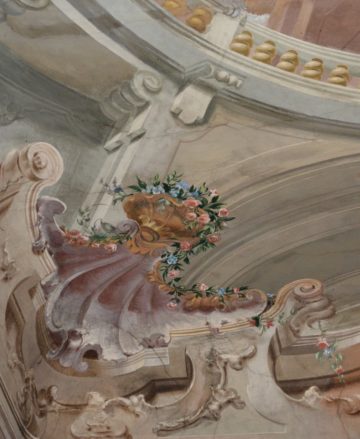Notevoli i sopraporta decorati con motivi paesaggistici inseriti dentro conchiglioni monocromi sui toni dell’ocra (Lechi, 1977, p. 277).