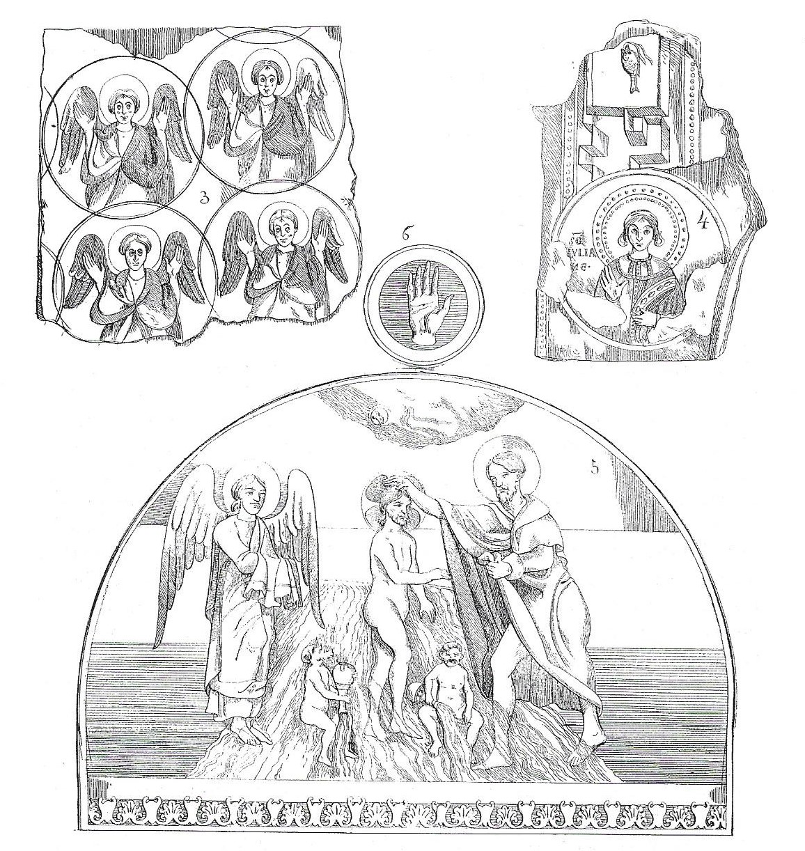 8. Quattro angeli, Santa Giuliana e il Battesimo di Cristo. Incisione di Orti Manara, 1841.