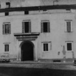 La sala al piano nobile, rivolta verso la piazza, si caratterizza per un soffitto decorato in stile neoclassico con riquadri contenenti elementi decorativi fitomorfi: quello centrale contiene un ovale e vari riquadri con racemi dipinti in monocromo grigio e dorato su sfondi sui toni del grigio, verde o ocra. Ai quattro lati del medaglione centrale sono rappresentate panoplie di strumenti musicali a coppie, mentre all’interno dei riquadri angolari figurano ovali con vasi a monocromo su fondo marrone, affiancati da una coppia di grifoni, da racemi d’acanto e fiori. Nel sovrapporta è dipinto un riquadro in finta pietra che reca al centro un motivo decorativo a foglie d’acanto e palme su fondo rosso.