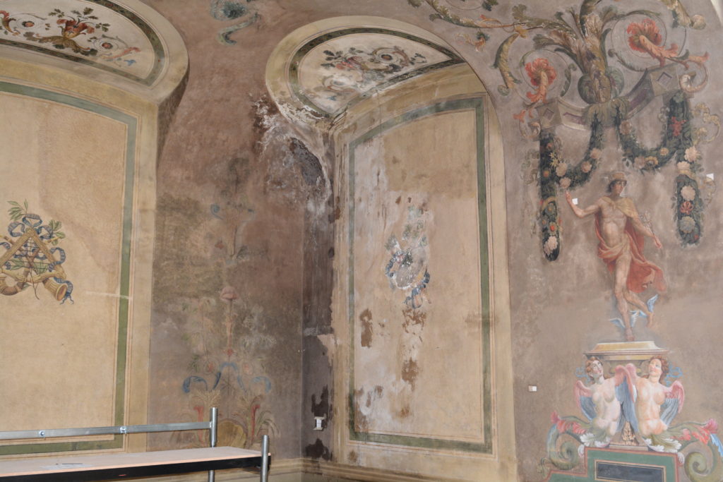 Nello spazio ovale al centro della volta il medesimo pittore coinvolto nell’allestimento delle sale 4 e 5 dipinse, tra la fine del XVIII e i primi anni del XIX secolo, un velario con la rappresentazione di Euterpe intenta a suonare il flauto in compagnia di un amorino.
